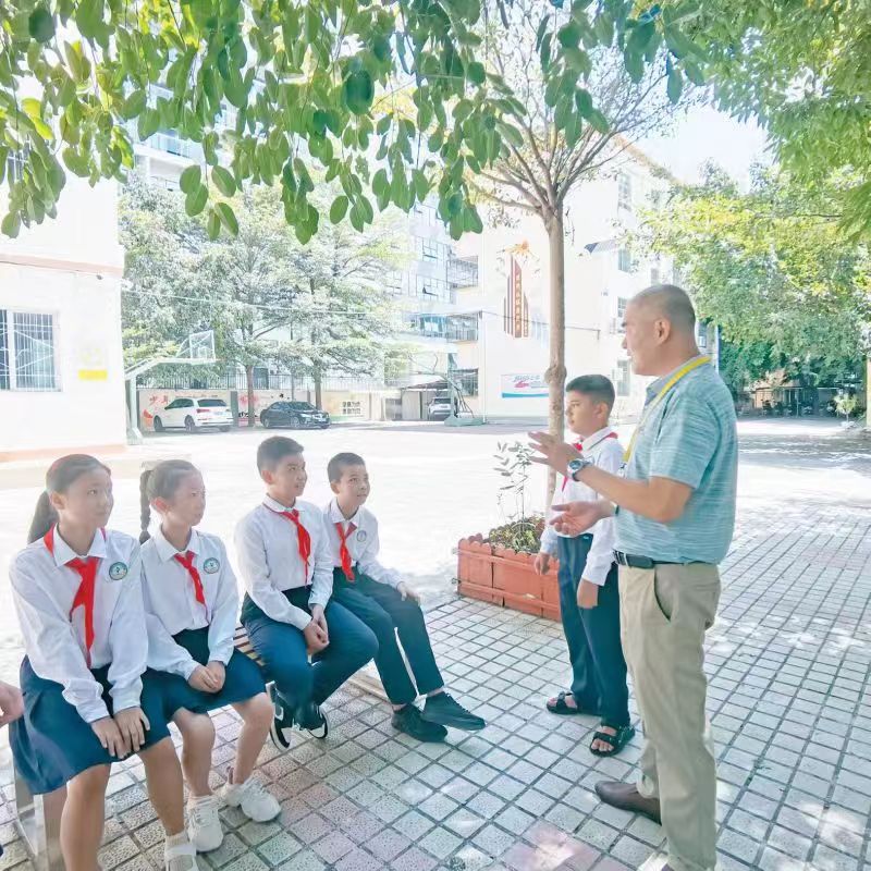 陈鼎,从教33年,现为吉阳区干沟小学校长、语文教师。