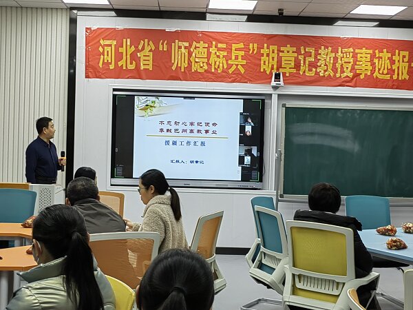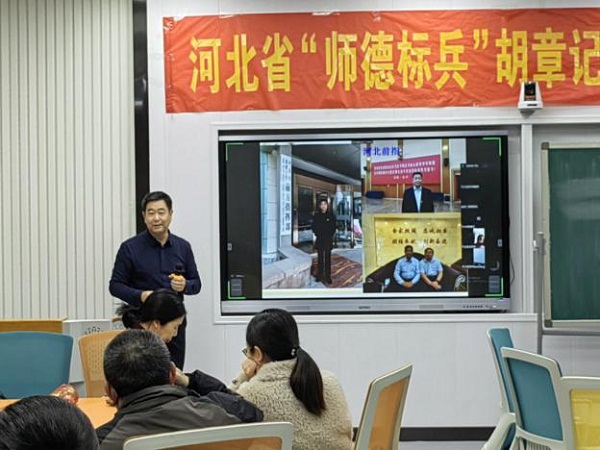 为深入学习贯彻习近平新时代中国特色社会主义思想和党的十九大精神,提高我院师范生师德素养,弘扬师德师风的良好氛围,2022年1月20日,特邀河北省“师德标兵”胡章记教授为化学与化工学院全体教师以及师范生开展了“践行师德”主题讲座,讲座采用线上线下结合形式进行。