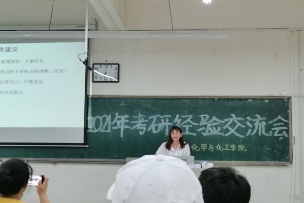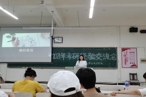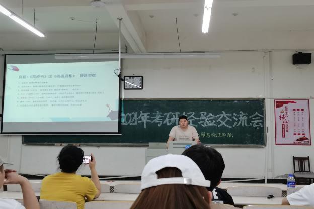 为激发同学们的学习热情和考研激情、明确考研目标、掌握相关考研技能、解决同学们在考研过程中遇到的问题。2021年6月6日晚,化学与化工学院在公教楼203举办化学与化工学院2021年考研经验交流会,诚邀已考取高校研究生的郭一鸣、李航帅和丁佳慧同学向2018级学生分析考研动态,传授考研经验,以便让同学们更好的抓住考研重点。