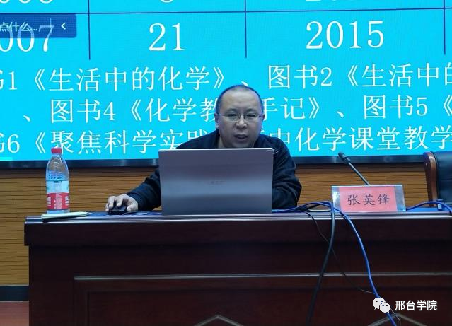近日,化学与化工学院特邀国家万人计划教学名师张英锋作“基于中学化学教学的研究与实践”主题讲座。会议由化学与化工学院副院长董丽丽主持。化学教研室全体教师,化学学科教学微团队成员以及2020级、2022级、2023级化学专业学生线下参会,2021级学生通过腾讯会议线上聆听。