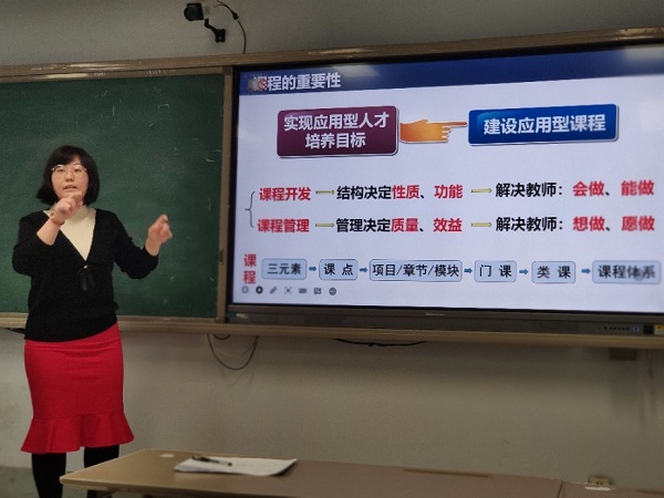目前,我院拥有一个产业学院——邢台学院碳基新材料产业学院,和一个应用型转型试点专业——化学工程与工艺专业。为更好的推动学院应用转型发展,在会议上,学院邀请“应用型课程开发工作坊”讲师团成员—张淑娇博士对全院教师进行了应用型课程建设培训,仔细剖析课程三级矩阵的形成与建设过程,全体教师获益匪浅,为应用型课程进一步建设指明方向和思路。