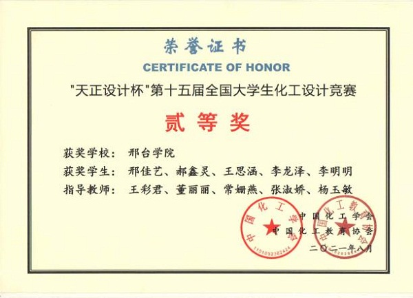 “天正设计杯”第十五届全国大学生化工设计竞赛