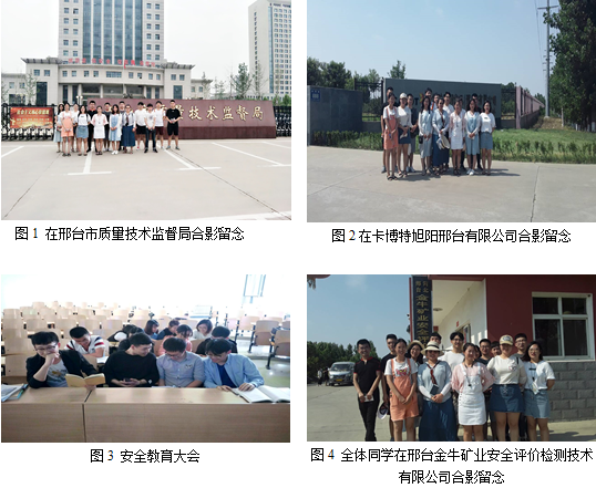 全体师生在邢台学院在20日进行了安全教育,了解了见习的安全注意事项。21日开始正式进入工厂见习。全体师生在21-23日分别在邢台市质量技术监督局、卡博特旭阳邢台有限公司、邢台金牛矿业安全评价检测技术有限公司进行实践教学活动。工厂的工作人员耐心向同学们讲解生产设备的原理及作用特点,并介绍了其生产工艺。同学们认真向工程师学习生产中的经验。通过这次见习,使同学们更加直观的了解到化学在生活中的应用、化学知识在生产实际过程的意义,巩固了在课堂上所学的专业知识。见习过程全体师生严格遵守工厂的规章制度,安全返校。