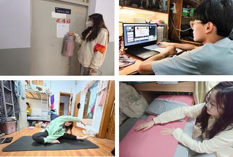 隔离期间,学生无法到教室上课,教师们开展线上教学工作,停课不停学,虽然师生不能进行面对面学习交流,但同学们在宿舍认真学习,保证课堂进度和课堂效率。同学们合理分配学习与休闲的时间,劳逸结合,齐心防疫,宅在宿舍不躺平,不忘加强身体锻炼,在宿舍进行跳绳、仰卧起坐、俯卧撑、练习瑜伽、平板支撑等体育锻炼,保持每天一定的运动量,保障自己拥有一个健康的体魄。