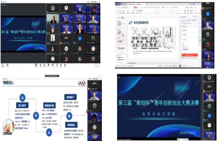受环境影响,第三届“青创杯”创新创业大赛决赛于12月4日14:00--18:00采用线上的方式举办。莅临本次比赛的领导和老师有:党总支书记王风春书记,副院长董丽丽教授,党总支副书记于玲老师,教科办主任王彩君副教授,化学教研室主任霍维涛副教授,应用化学教研室主任常姗燕博士,化学工程教研室主任张淑娇博士,赵治巨副教授,王彦娜博士,团委书记霍国钠老师,学管办主任刘思老师。本次比赛中,各班同学积极参与,评委老师对参赛小组进行了客观公正的打分环节后,评选出一等奖1名,二等奖2名,三等奖3名。