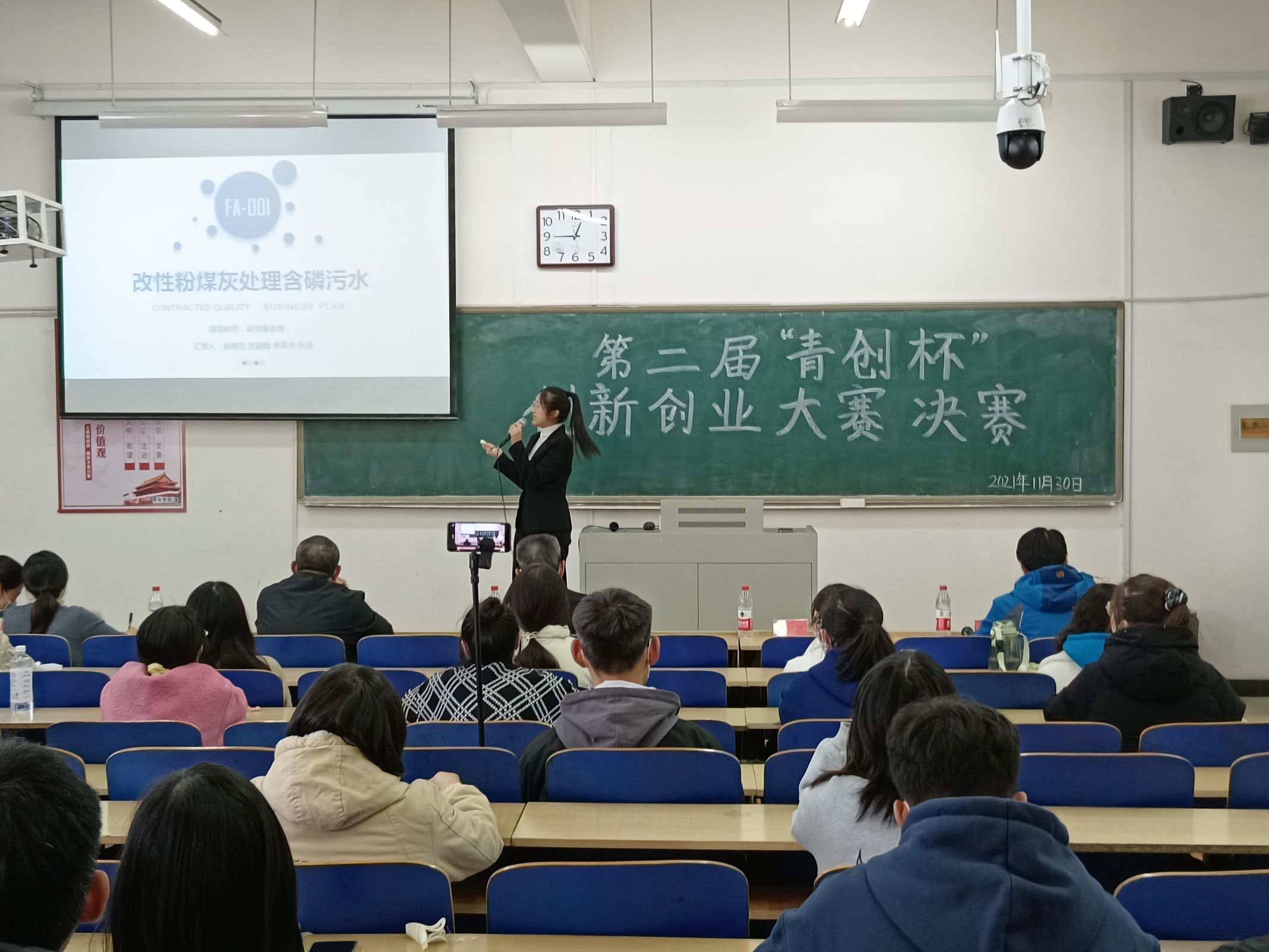 第二届“青创杯”创新创业决赛于2021年11月30日隆重举行,此次活动分为两个会场,主会场于公教楼511教室举行,分会场以现场直播方式于517教室同时进行,会场观众共计120人。莅临本次活动现场的有:化学与化工学院党总支书记王风春,化学与化工学院副院长董丽丽博士,化学工程教研室主任王力川副教授,实验中心副主任郭桂全博士,学生管理办公室主任于玲老师以及团委负责人李璇老师,辅导员代表霍国钠老师。