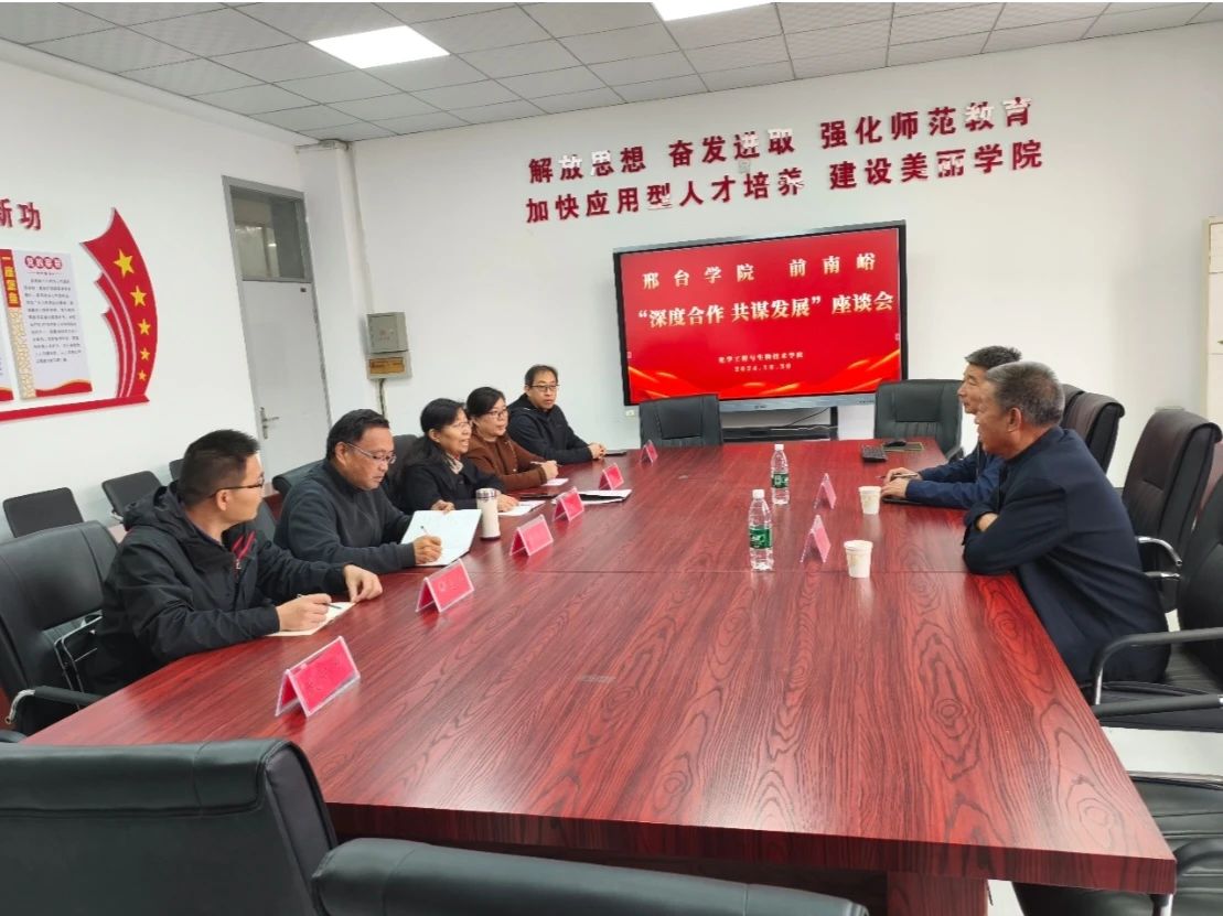 10月30日上午,化学工程与生物技术学院与邢台市信都区前南峪村开展题为“深度合作 共谋发展”座谈会在我校召开。 “全国劳动模范”前南峪村党委书记郭天林,前南峪村党委副书记、邢台前南峪农业开发有限公司总经理郭高升,化学工程与生物技术学院院长唐伟斌教授,以及学院朱秀敏教授、杜军霞博士、郝长敏博士、王艳超博士、武丽娜博士参加活动。