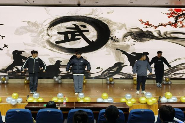 此次晚会吸引众多才华横溢的学子参与表演,同学们纷纷施展才艺,带来诸多精彩节目。在优美动人的歌舞串烧、振奋人心的武术表演中,晚会正式拉开帷幕。歌唱类节目,曲曲深情,多元情感与主题在旋律中流淌,如灵动音符撩拨心弦,朗诵节目以饱满激情展现中国青年风貌与爱国情怀,如洪钟大吕,震撼人心,其他节目形式亦是丰富多彩,三句半节目兼备知识和乐趣,小品表演幽默诙谐,舞蹈表演似灵动光影,每个节目都令观众如痴如醉,掌声与欢呼声交织不断。在互动环节,网络安全知识问答让同学们更好地认识网络安全,抢凳子活动充分调动了同学们的积极性。晚会在集体大合唱《明天会更好》中完美落幕。