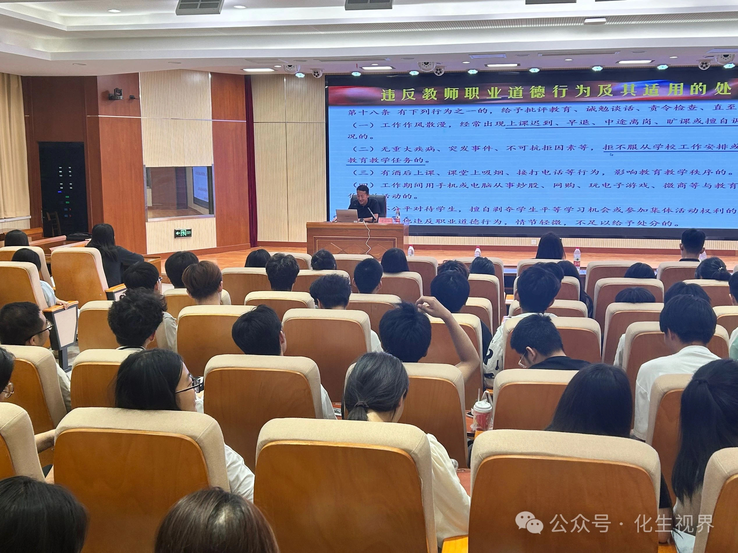 为进一步提升我院人才培养质量,充分发挥优秀校友的榜样力量,9月28日上午,化学工程与生物技术学院在图书馆报告厅举办“优秀校友进校园”活动。我院邀请邢台市二中副校长樊云峰作报告,我院团委负责人霍国钠、辅导员李雅杰、靳高阳、2024级全体师范生参加会议,党委副书记于玲主持报告会。