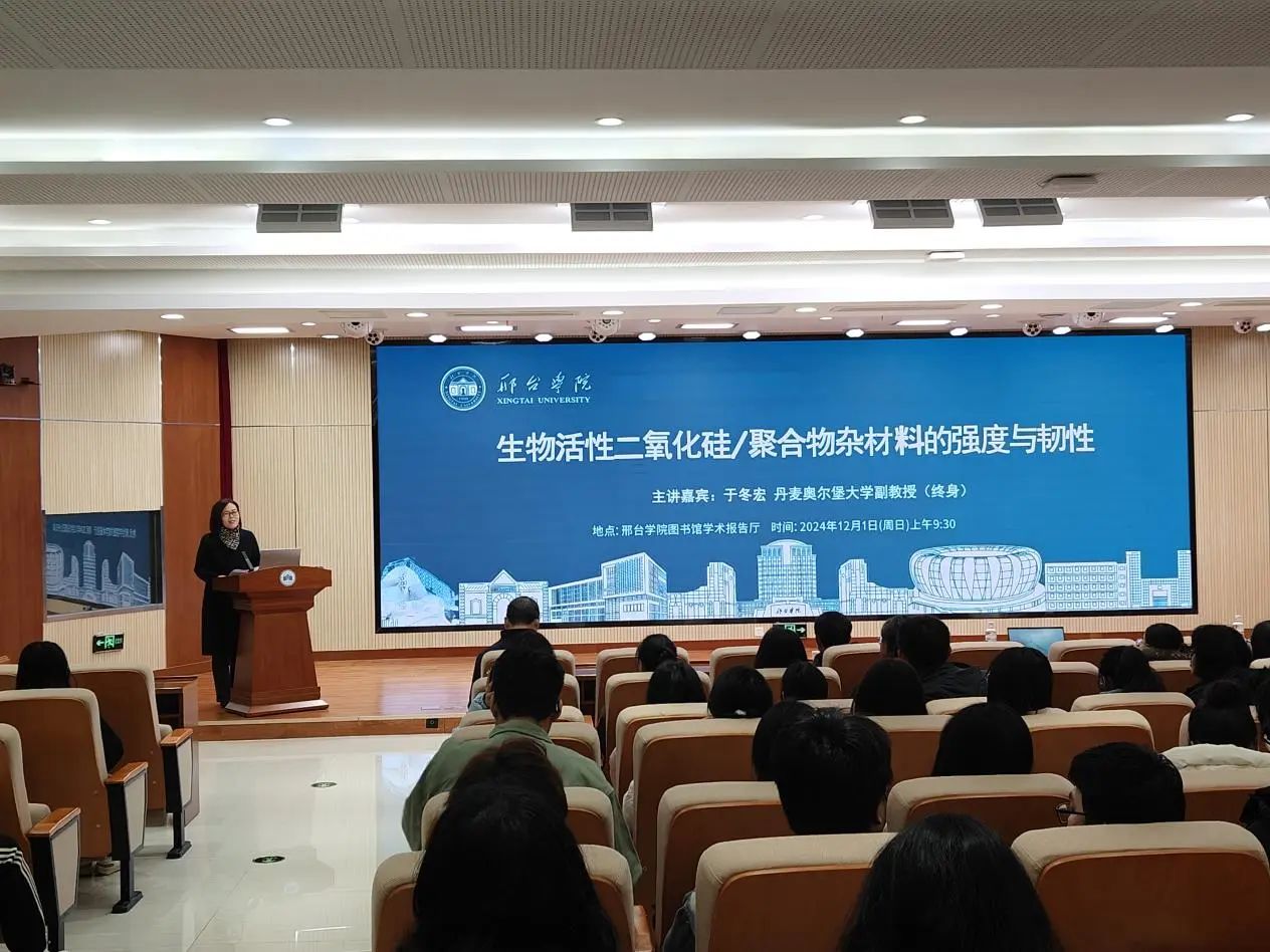 为推动我学院材料与化工硕士点建设发展,加强国内外合作交流以及应用型转型专业的人才培养。12月1日,我院邀请丹麦奥尔堡大学于冬宏副教授、齐鲁工业大学姚金水教授来校进行访问交流,并分别作《生物活性二氧化硅/聚合物杂材料的强度与韧性》、《生物应用高分子材料研究及对生物可降解高分子材料的理性思考》专题报告,化学工程与生物技术学院副书记于玲主持报告会,赵治巨副教授、材料工程方向团队成员、应用化学专业及化学工程与工艺专业以及高分子材料与工程微专业的150余名师生参加。 报告会上,于冬宏详细介绍了丹麦学校对学生的管理情况、学生本硕连读的课程与要求以及提供了一些去国外深造需要的条件。结合无机材料与有机材料的优势,制备了生物玻璃,并结合对材料的强度与韧性的表征,制备研发新的有机无机杂化材料。姚金水科普了高分子材料的毒性概念,对高分子材料的生物可降解进行了详细的阐述,并结合日常生活的用品进行了举例说明。最后,姚金水对我院学生去齐鲁工业大学就读研究生表示热烈欢迎并提供了不同的方向渠道。