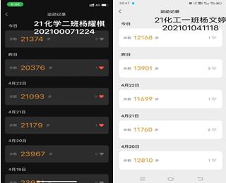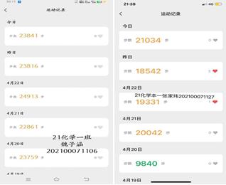 活动伊始,同学们积极参与、认真配合,按照活动规定进行健步走运动,记录步数并五天上交一次微信运动截图,由班委打包整理交给外联部干事进行统计与排名,其中21应化二班的王欣同学、20应化二班的敦锦鹏同学、21化学一班的刘文硕同学每天坚持运动,在总成绩中位居前三。参赛同学在到梦空间踊跃报名,在为期两周的活动中体现了同学们对本次活动认真对待、不弄虚作假的态度,也展现了同学们阳光向上、热爱运动的精神,深度契合本次活动的主题。同时,各班班委与团委学生会干事之间默契配合,有效加强了班委与团委学生会这两大学生组织之间的联系。