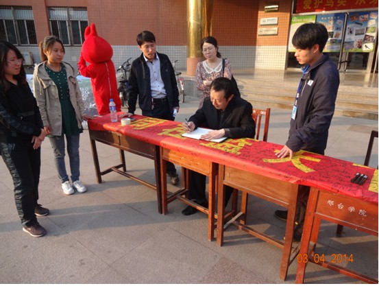本次活动在张树兴书记和武宇红院长的大力支持和指导下,带领化生院团委学生会和12级生物科学的同学成功的举办了邢台学院爱鸟周活动。本次活动得到了领导和老师的大力支持与推广,当天,武宇红院长百忙之中抽空来到活动现场为同学们详细介绍了邢台市本地的各种常见鸟类,让同学更加了解身边的鸟类的生存环境,从而去保护它们。同学们当天也是热情高涨,纷纷为保护鸟类签下了自己的名字。