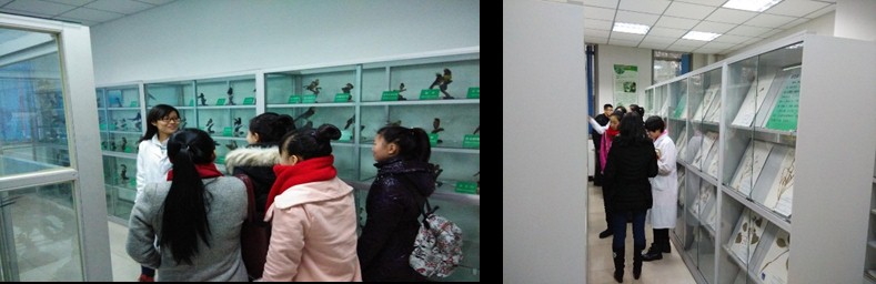2015年11月25日化学工程与生物技术学院生物实验中心与地理系联合举办了2015—2016学年度第一学期“实验室开放日”活动。今年是我院与地理系首次联合开放标本室,地理系地质标本陈列室和鉴定室、我院动物标本室、植物标本室参加了本次开放日活动。来自文学院、教师教育学院、会计学院、化生学院、美术与设计学院、教科部等院系的120余名师生参观了生物实验中心动物标本室和植物标本室。