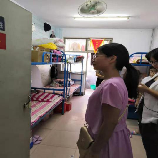2019年9月1号下午,化学与化工学院书记樊娜、学管主任于玲以及各位辅导员一同来到本院的学生宿舍看望每位学生的住宿生活情况。同学们正在收拾整理宿舍,迎接新学期的开学第一课。每一位同学都以积极、热情的态度来迎接新的一个学期,宿舍内务以及卫生都很整洁,其中较好的几个宿舍如下:金桥五号的425、346、138、130以及南区四号宿舍的学生,宿舍收拾的干净整齐,同时使宿舍赋予生活气息,给人以家的温暖。这是我们学习的榜样。