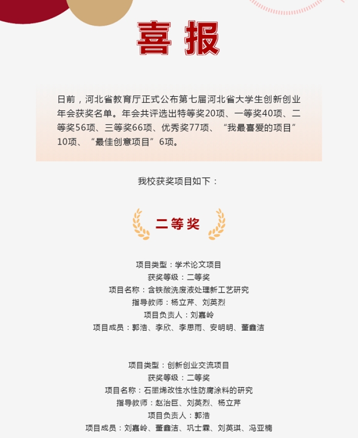 在2022年河北省大学生创新创业训练计划中,我院共16个项目立项,其中2项推荐国家级,5项推荐省级。
