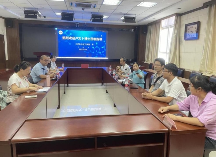 7月28日,化学与化工学院邀请山西师范大学化学与材料科学学院副院长卢文卜博士于主楼10层会议室进行交流指导。