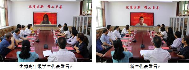 以我之经,传你之方。高年级学生代表19级化学一班张漠涵同学代表全体老生向新同学们表示最热烈的欢迎,并给新生提出了如何应对大学生活的几种具体方法:一、学会适应,适应新的生活,新的环境,规划好新的目标航线。二、善用平台,参与到锻炼社交能力与各类技能的平台中去完善自我。三、超越自我,勇敢接触善于表现自我,超越昨天的自己!