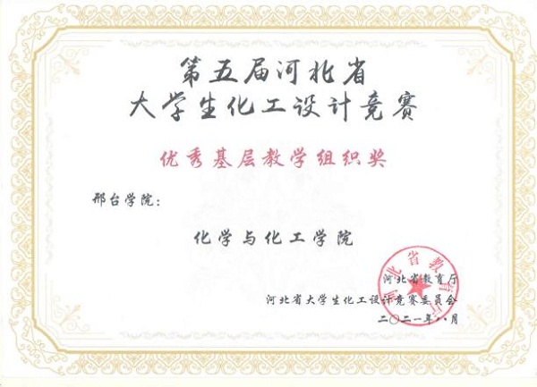| 1 | 化学与化工学院 | 第五届河北省化工设计竞赛 | 优秀基层教学组织奖 |
