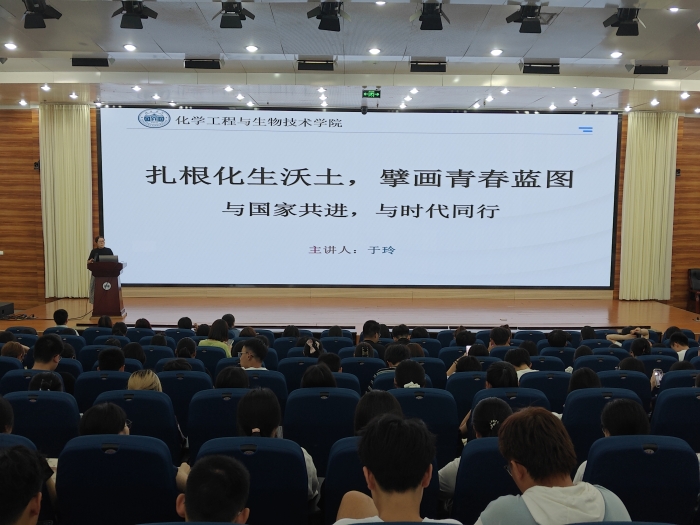 9月1日下午,邢台学院化学工程与生物技术学院2025级新生交流会在体育馆报告厅举行。本次交流会以"扎根化生沃土,擘画青春蓝图-与国家共进,与时代同行"为主题,学院副书记于玲担任主讲,围绕"明道、优术、见贤、知行"四大板块,为新生带来了一场内容丰富、启迪深刻的专题讲座。