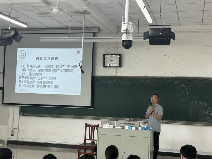 化学专业校内指导教师霍维涛副教授紧扣“做什么、怎么做、注意什么” 三大核心问题,对实习安排、实施细则及评价标准进行系统解读,为学生送上一份清晰具体的 “实习行动指南”。