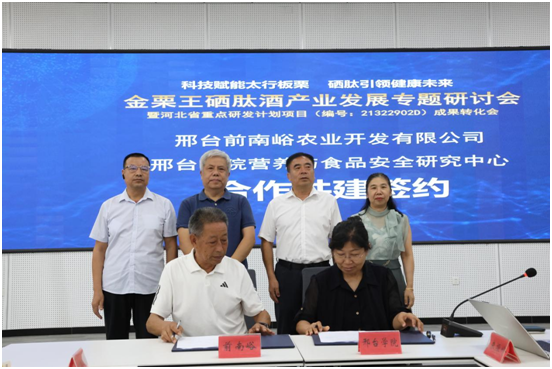 8月6日,“科技赋能太行板栗,硒肽引领健康未来”专题研讨会暨邢台学院营养与食品安全研究中心与邢台前南峪农业开发有限公司联合成立"太行板栗食品研究院"签约仪式在邢台学院创新创业中心102会议室举行。