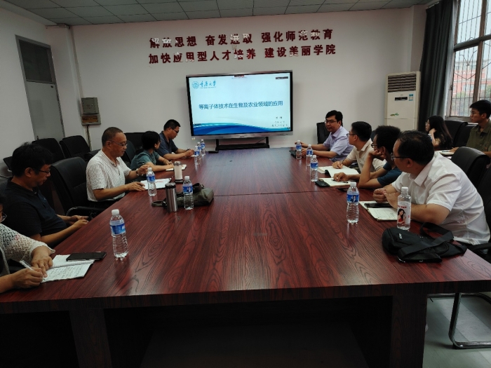 近日,河北数字化淡水水产养殖技术重点实验室学术会议在我校召开。会议邀请重庆大学博士生导师刘坤教授做了题为《等离子体技术在生物和农业领域的应用》的学术报告,同时总结近期工作,安排部署下半年实验室工作。化学工程与生物技术学院院长、重点实验室常务副主任唐伟斌教授主持会议。