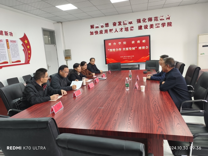 10月30日上午,化学工程与生物技术学院与邢台市信都区前南峪村开展题为“深度合作 共谋发展”座谈会在我校召开。 “全国劳动模范”前南峪村党委书记郭天林,前南峪村党委副书记、邢台前南峪农业开发有限公司总经理郭高升,化学工程与生物技术学院院长唐伟斌教授,以及学院朱秀敏教授、杜军霞博士、郝长敏博士、王艳超博士、武丽娜博士参加活动。