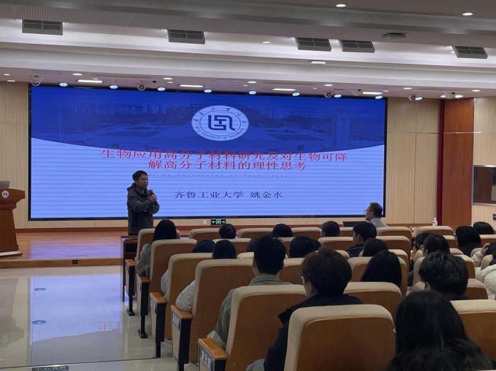 报告会上,于冬宏详细介绍了丹麦学校对学生的管理情况、学生本硕连读的课程与要求以及提供了一些去国外深造需要的条件。结合无机材料与有机材料的优势,制备了生物玻璃,并结合对材料的强度与韧性的表征,制备研发新的有机无机杂化材料。姚金水科普了高分子材料的毒性概念,对高分子材料的生物可降解进行了详细的阐述,并结合日常生活的用品进行了举例说明。最后,姚金水对我院学生去齐鲁工业大学就读研究生表示热烈欢迎并提供了不同的方向渠道。