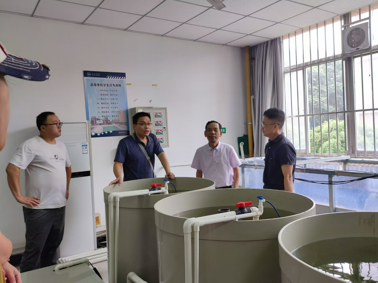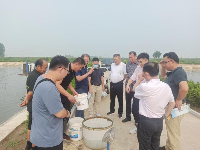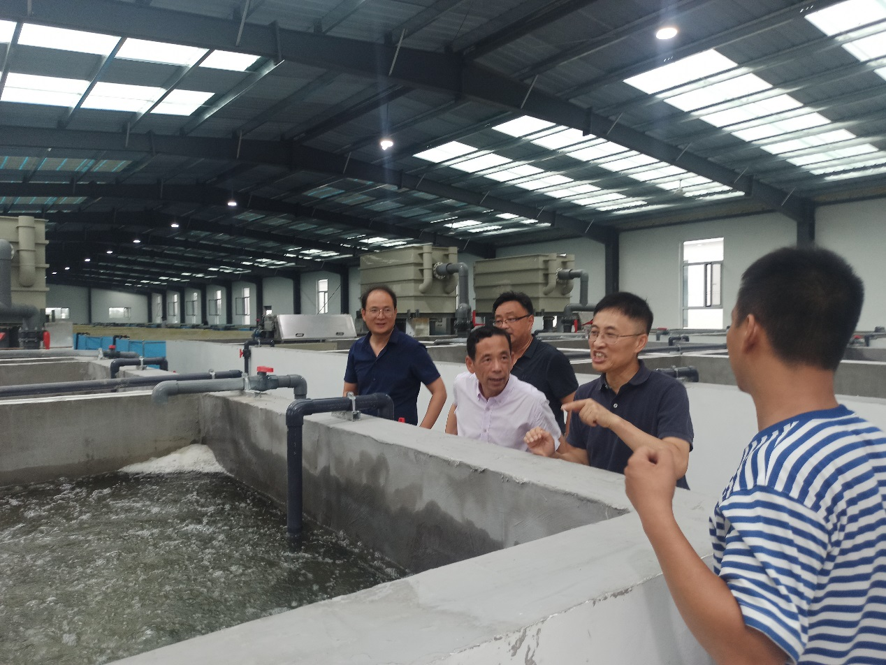 同日下午,调研组一行到重点实验室共建单位沙河海跃农业科技有限公司和合作单位邢台庄馗农业科技有限公司参观并现场指导加州鲈鱼养殖。