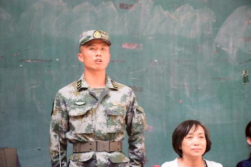 学院党总支副书记樊娜从大学生军训的意义、四年学习生活的规划两方面致辞。樊书记强调,大学生军训是加强全民国防教育的需要,是增强忧患意识,加强国防后备力量建设的需要,是增强国防观念、维护祖国统一的需要,是加强和提高生存能力、抗灾防恐、自救互救能力的需要,是学习部队优良传统,培养集体主义精神,增强组织纪律性的需要。樊书记要求同学们在军训期间,要尊重教官,服从命令,听从指挥,像军人一样英姿飒爽,像军人一样纪律严明,像军人一样意志刚强,用出色的表现为大学生活开好头,起好步。在谈到大学四年的生活,樊书记要求同学们要有一颗同祖国人民共进退的中国心,要有一种敢于同命运抗争的精神。最后引用习总书记的话告诫同学们:青春是用来奋斗的!