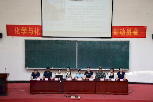 9月9日上午,化学与化工学院2019级新生入学教育暨军训动员会在公教楼东报告厅隆重举行。军训四名教官,旭阳集团邢台园区总经理郎莹博士,学院负责人王秀玲教授,党总支副书记樊娜,副院长董丽丽,实验中心胡章记,应用化学教研室主任梁慧锋,化学工程教研室王力川,教学科研办公室王彩君,学院部分老师、辅导员和班主任,2019级211名新生参加会议,大会由学管办主任于玲主持。动员会在庄严、雄壮的国歌声中拉开帷幕。