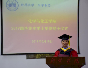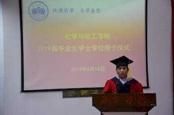 随后,在熟悉的校歌声中,同学们身着学士服依次走上主席台,刘永利校长、吴远远主任、王秀玲教授、樊娜书记及分学位委员会委员为136名化学工程与工艺专业、化学、应用化学专业的毕业生颁发学位证书并拨苏正冠,合影留念。一张证书,一张照片,即是永恒。时光太瘦,岁月太浅,属于我们的是回忆和期盼,属于你们的是青春不散,奋进不止。同学们,带着母校的祝福与期望,勇敢的走出校门,走向人生,再次出发,去迎接属于你们的辉煌!