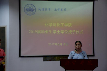 6月18日上午8时,化学与化工学院2019届学士学位授予仪式在图书馆报告厅隆重举行。邢台学院副校长刘永利教授、校长办公室主任吴远远教授、化学与化工学院院长王秀玲、党总支副书记樊娜、副院长董丽丽、应用化学教研室主任梁慧锋、实验中心主任胡章记、化学工程教研室主任王力川、教科办主任王彩君、学管办主任于玲以及化工学院教师、2019届全体本科毕业生和在校生代表参加了本次典礼。本次活动由副院长董丽丽主持。