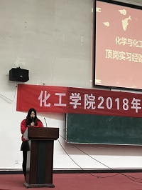 紧接着是16级化学和18级化学接本12位同学代表就顶岗实习当中的经验与收获同学弟学妹进行分享。