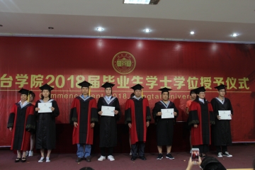 6月27日下午3时,在庄严雄壮的国歌声中,化学与化工学院2018届毕业生学士学位授予仪式在图书馆报告厅隆重举行。学校副校长蔡振禹教授,校长办公室主任吴远远教授、化学工程与生物技术学院书记张树兴、化学与化工学院院长王秀玲,实验中心主任胡章记,应用化学教研室主任梁慧锋,化工教研室主任王力川,化学教研室主任董丽丽,教学科研办公室主任王彩君、学生管理办公室主任于玲,学院全体教师及2018届全体毕业生参加了授予仪式。