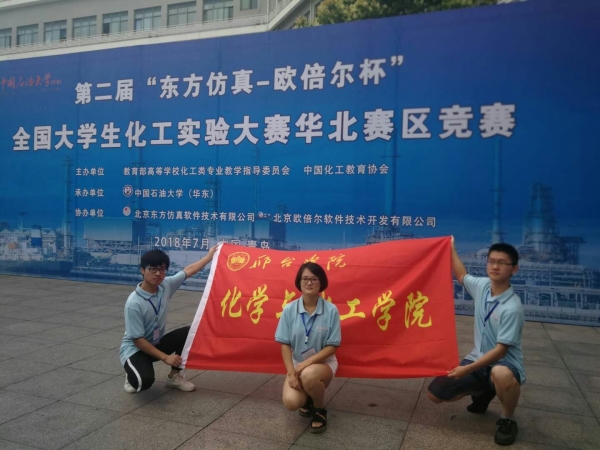 化工实验大赛,基于化工专业主干课程化工原理和化工原理实验,包含化工原理理论考试,化工单元仿真操作、化工原理实验操作三部分,是新工科倡导下的高标准技能竞赛。化学与化工学院对该项比赛尤为重视。虽初次参赛,王彩君、赵俊两位老师带领3名学生,认真备赛,互帮互助,比赛中全力发挥,努力拼搏,经过与各高校参赛队员的激烈角逐,最终取得了华北赛区团体二等奖的优异成绩。