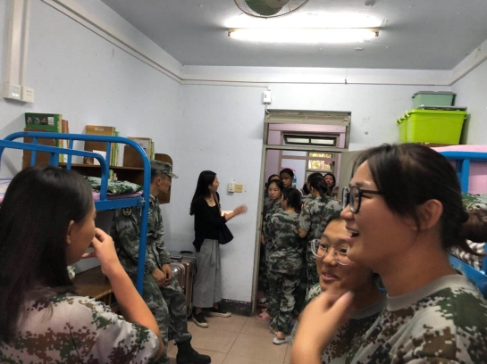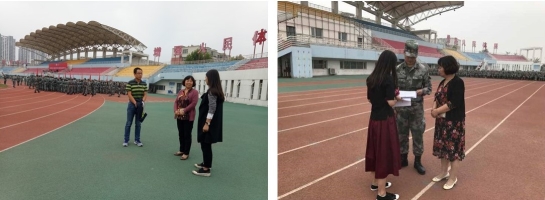 体检期间,辅导员老师特意过来查看同学们的情况,问候并叮嘱晕血和低血糖的同学。军训期间辅导员老师也一直在场地值班,寸步不离,趁休息期间去到队伍里关心同学们的身体状况。