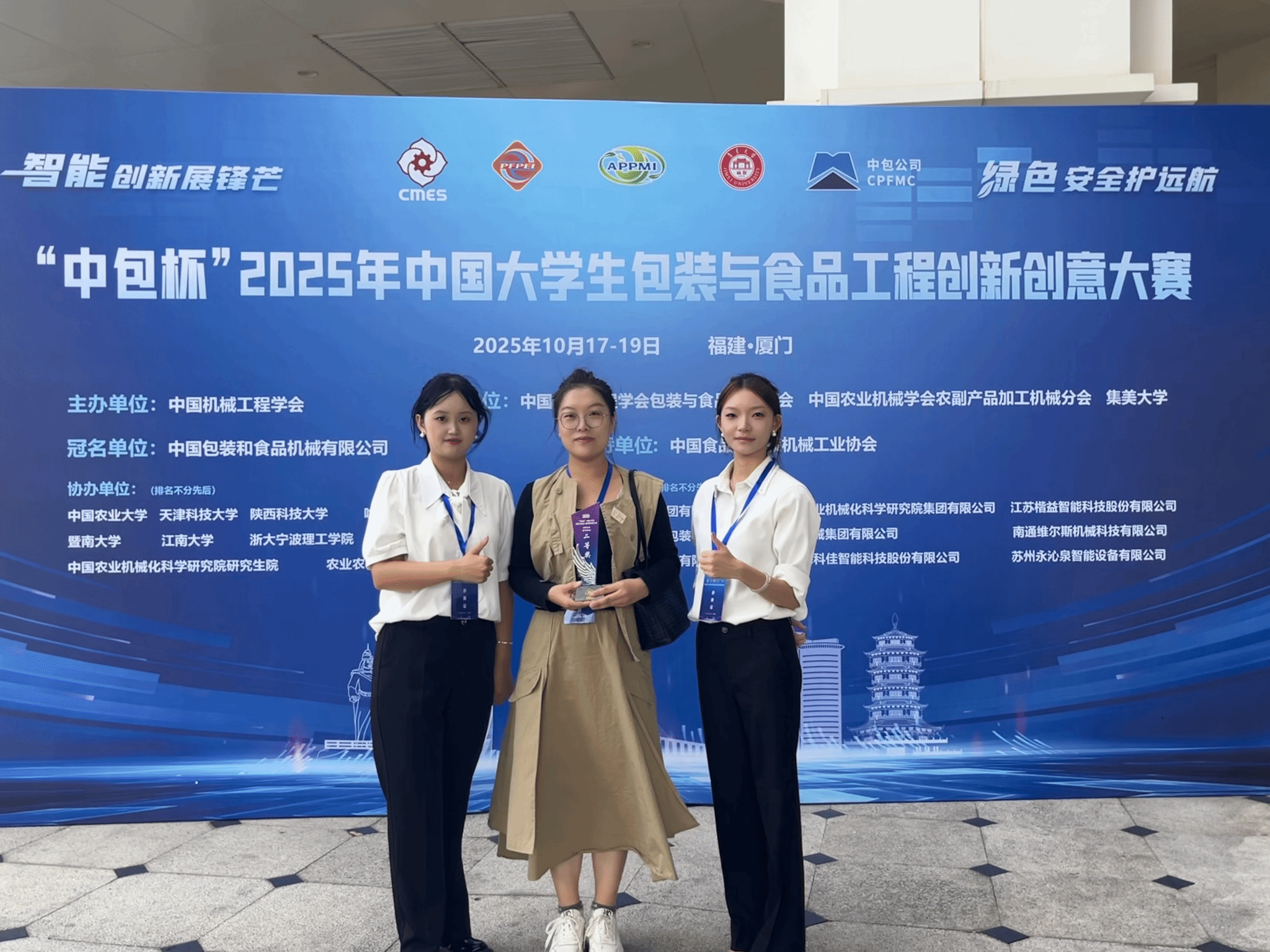 2025 年 10 月 17 日至 19 日,由中国机械工程学会主办的2025 中国大学生包装与食品工程创新创意大赛在福建厦门圆满落幕。作为食品工程领域极具权威性与影响力的国家级赛事,本次大赛以 “智能创新展锋芒,绿色安全护远航” 为核心主题,聚焦行业前沿技术与绿色发展需求,吸引了全国百余所高校的优秀团队同台竞技,共话食品工程领域的创新未来。