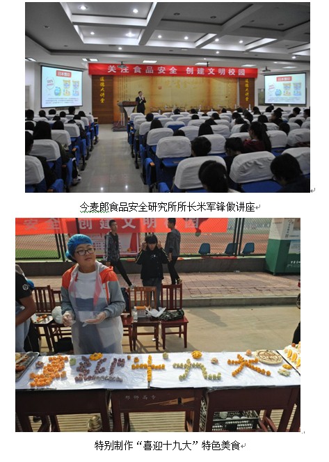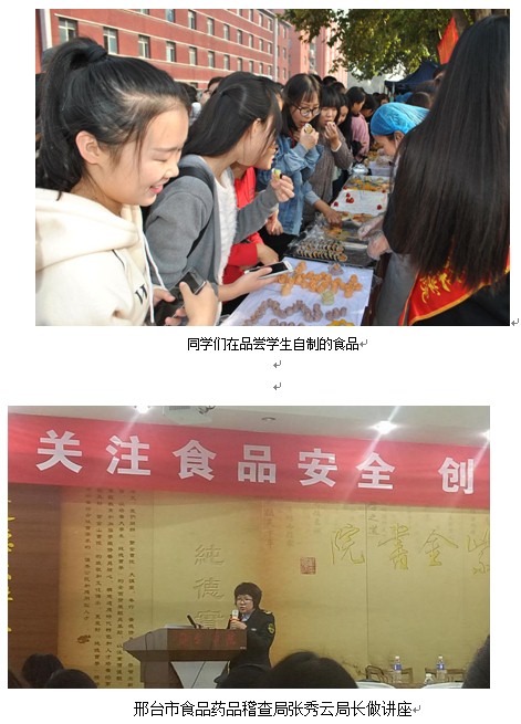 10月16日下午,在邢台学院图书馆报告厅举行第二届校园食品文化节开幕式暨知识讲座。开幕式由杨胭茹老师主持,邢台学院化学工程与生物技术学院院长武宇红教授致开幕词,并进行了主旨演讲,阐明了本次美食节的举办就是要同学们拥有更多的实践能力,为同学们提供更多的实战经验,食品文化节是食品产业发展的同心圆,学校不与企业融合,犹如闭门造车,食品文化节的举办,是我们迈出校企合作的重要一步。党委书记张树兴进行了热情洋溢、饱含激情的发言,告诉大家在全面小康社会来临之际,食品产业将会成为黄金产业,在社会主义旗帜下,激励我们要努力奋斗,争做邢台地区食品研发工作领头羊。河北谷馨坊食品有限公司总经理李军作为企业代表对邢台学院第二届校园食品文化节开幕致贺词。出席开幕式的还有邢台市食品药品稽查局张秀云局长、邢台市食品药品稽查局周群标队长、今麦郎食品安全研究所米军锋所长、今麦郎制面部单建勇经理以及化生学院部分师生代表。开幕式之后,邢台市食品药品稽查局张秀云局长结合“新形式下食品安全监管工作”,介绍了相关的食品安全问题,分析了当前社会食品安全的新形势。今麦郎食品安全研究所所长米军锋结合食品生产工艺、产品质量、食品研发与检验等方面,做了关于食品安全的知识讲座。化生学院团委学生会在全校组织了个人及团体美食知识竞赛,宣传营养健康知识,增强食品安全意识,倡导科学健康的生活方式。